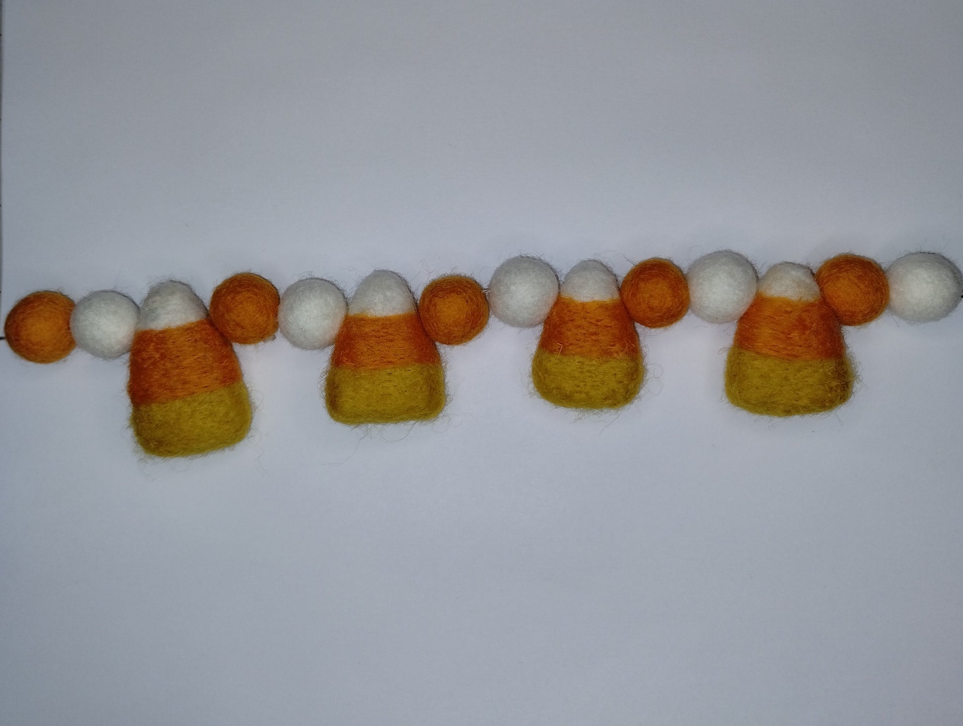 Each garland is made of felted wool candy corns and balls. Please see photos for approx. size of each piece.